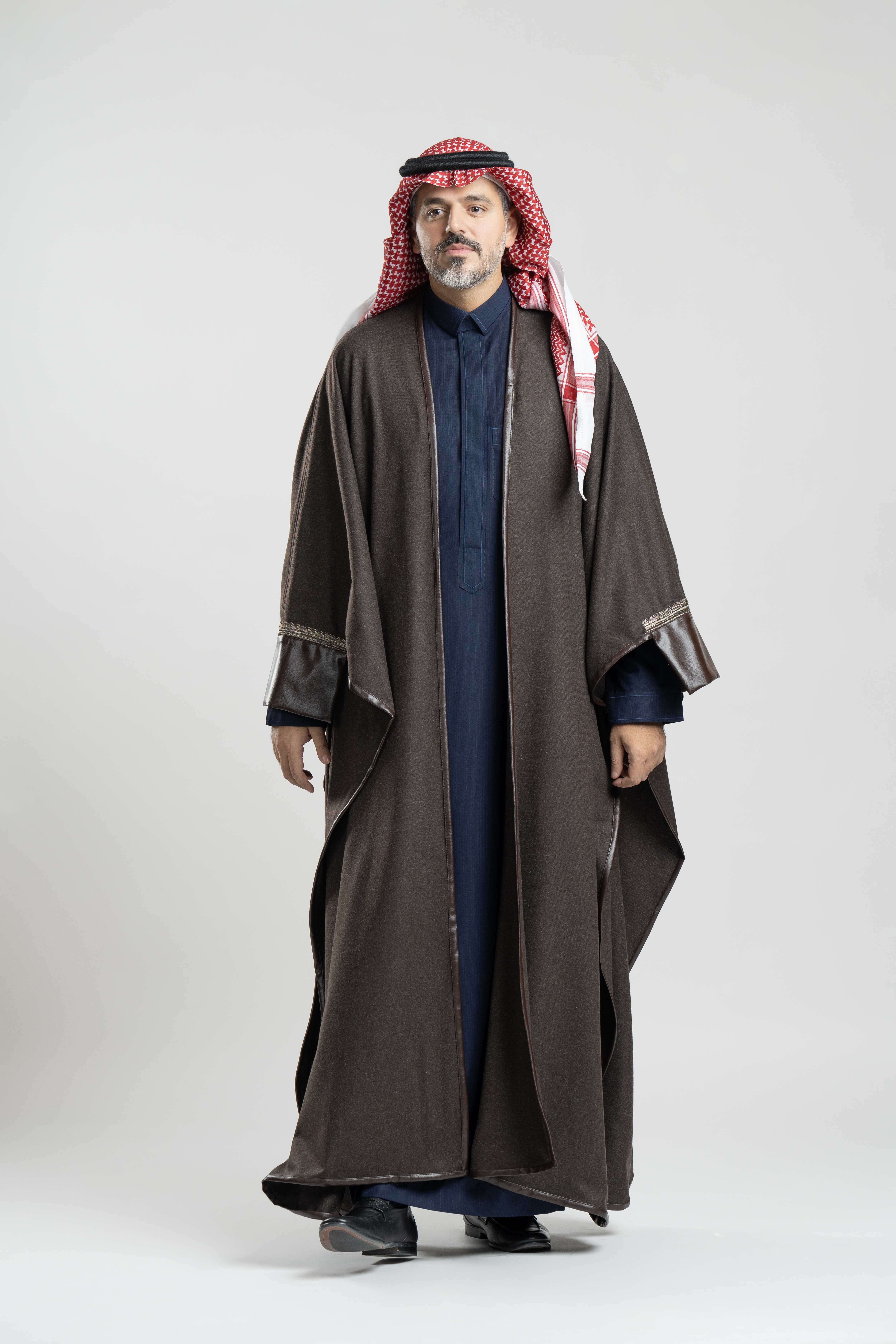 Men's Brown Wool Bisht with Leather Sleeves Decorated with Zari Embroidery