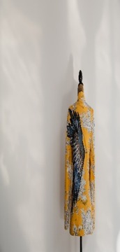 Yellow Cotton Canvass Jacket with Wing Hand Art Work and Stripe Vest