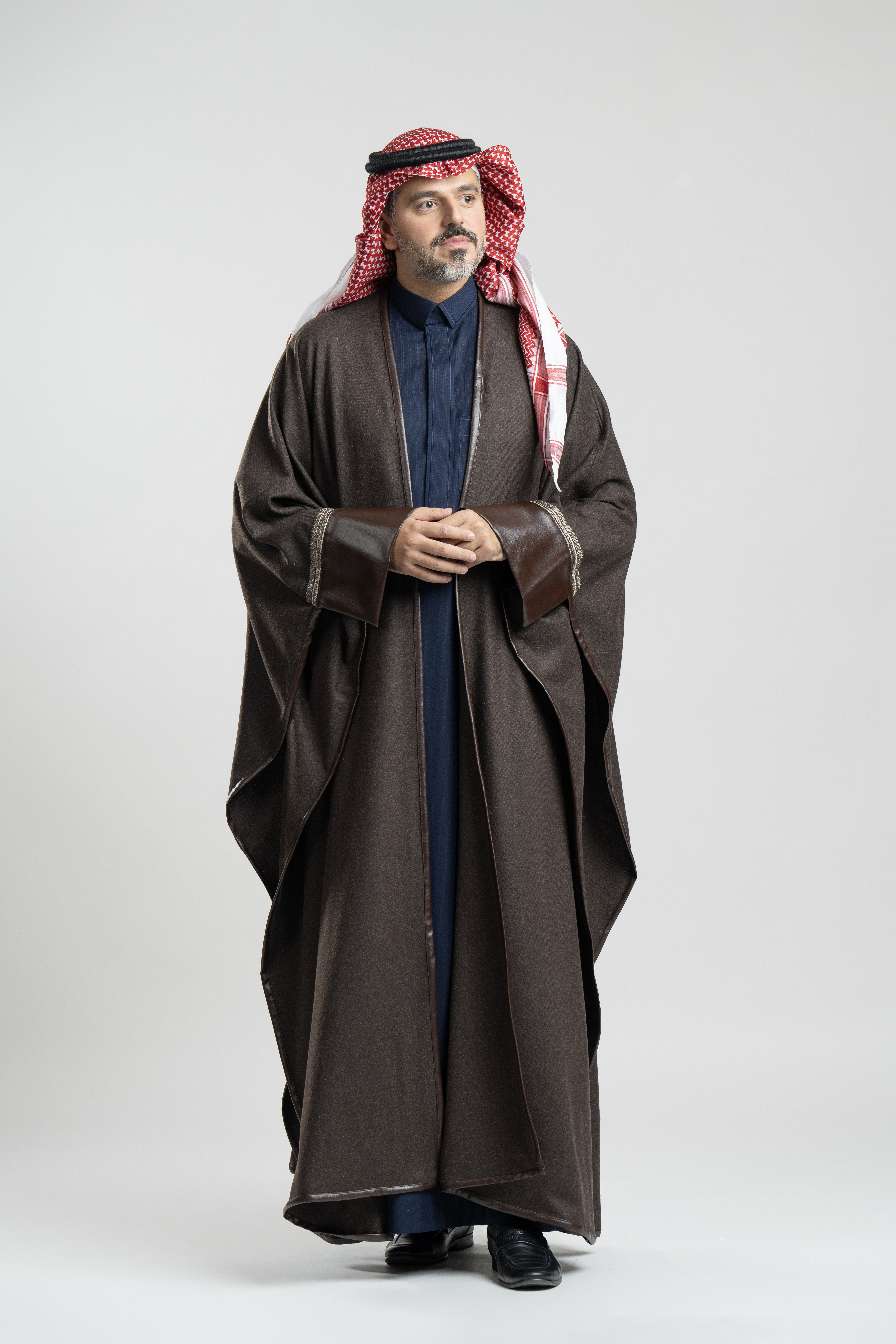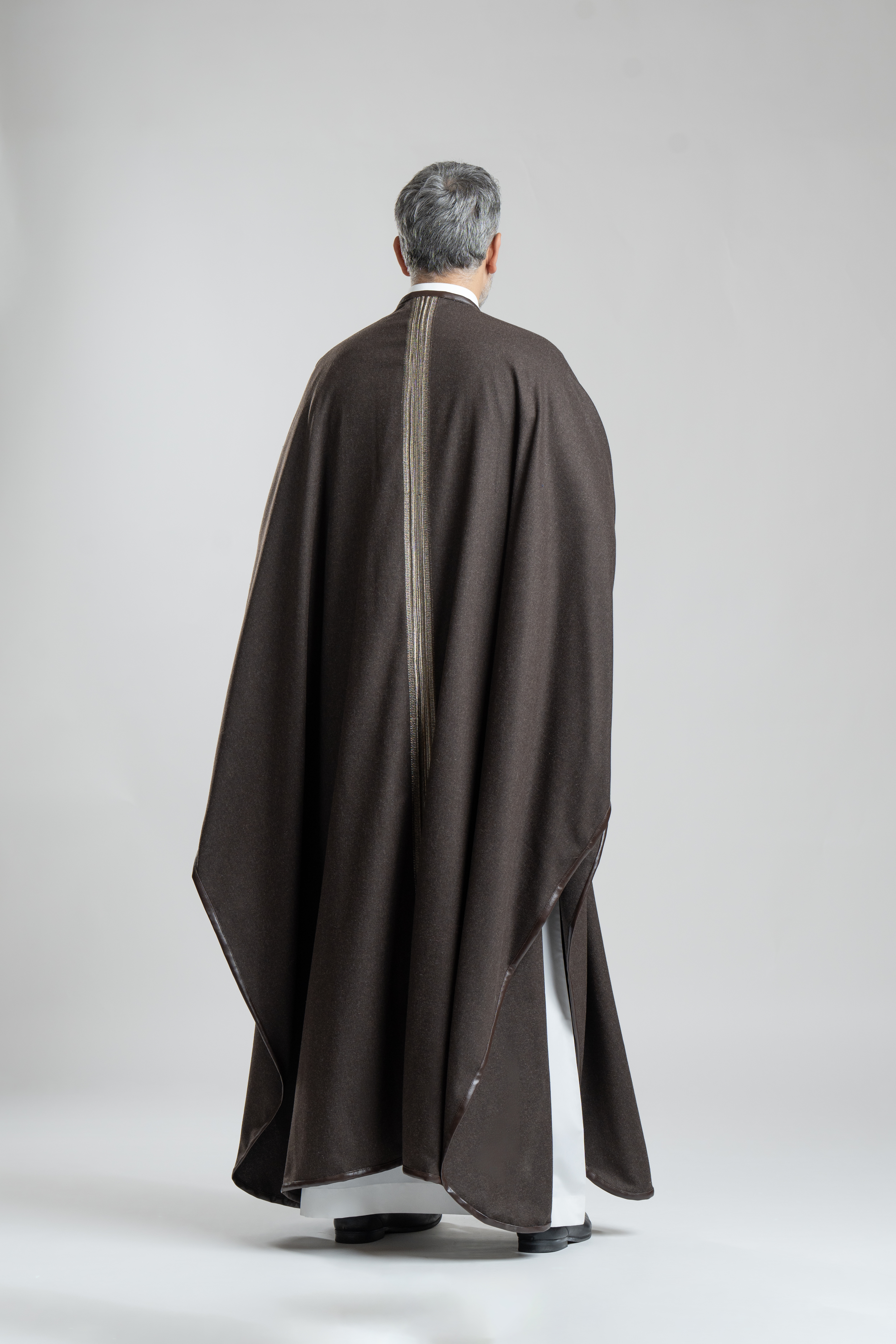 Men's Brown Wool Bisht with Leather Sleeves Decorated with Zari Embroidery