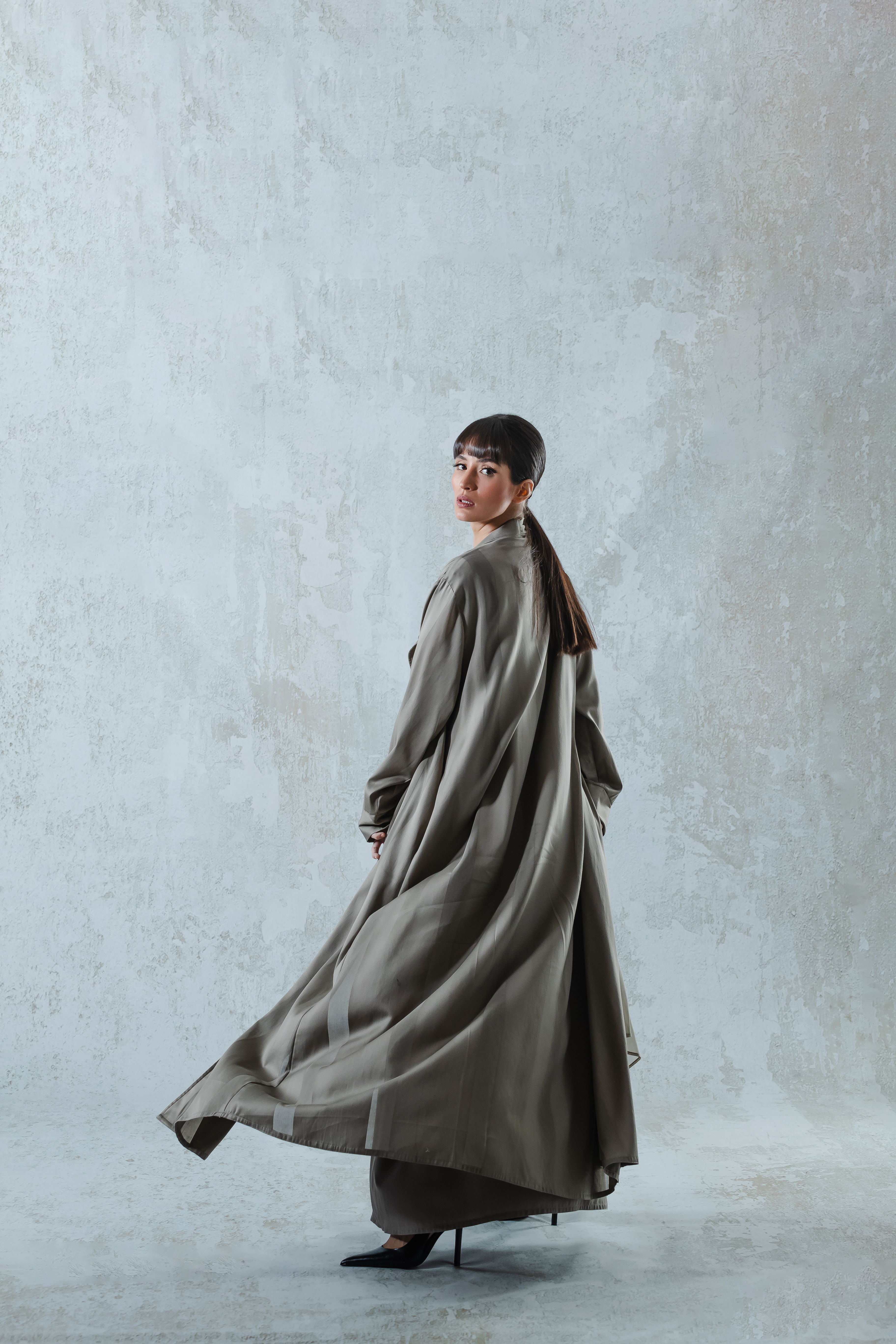 Abaya and dress of striped voile, petrol color