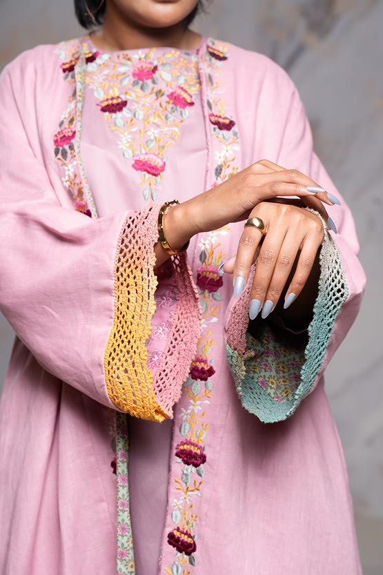 Bisht With Embroidered pink Dress