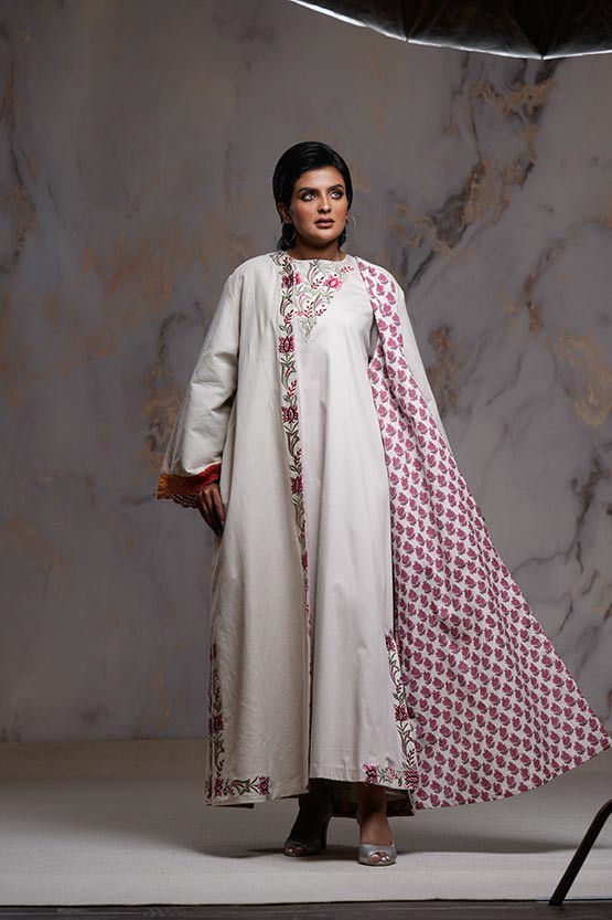 Bisht with Embroidered Light Pink Dress