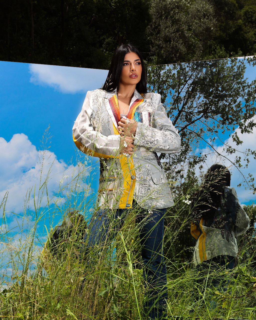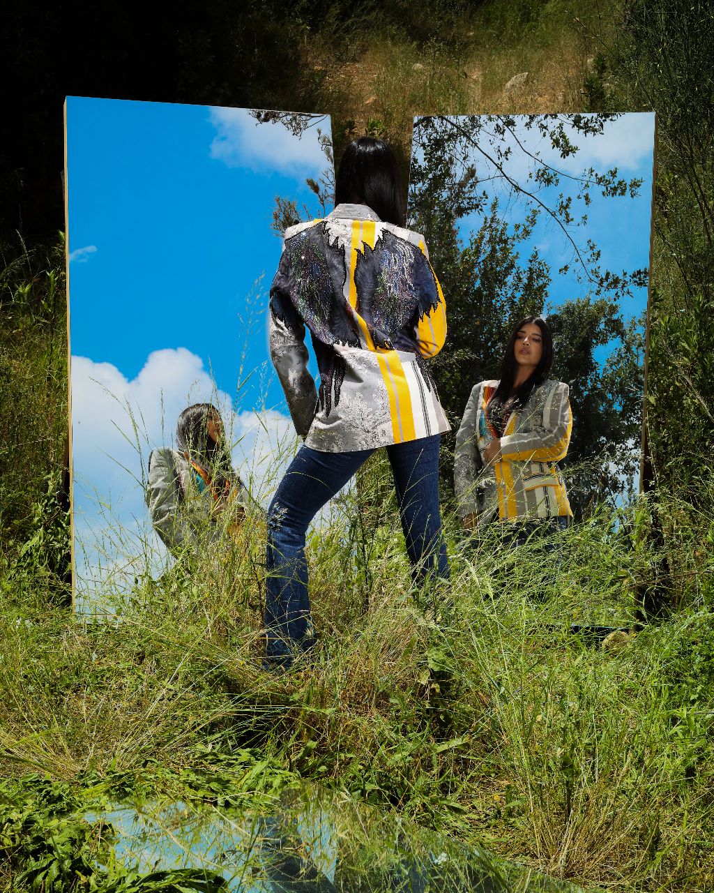 Gray/Striped Canvass Cotton Jaket with Wing Hand Art Work